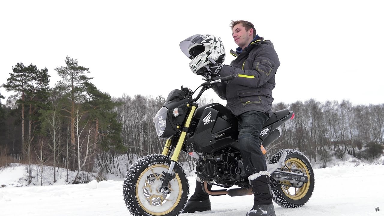 Прорайдер Денис Рыбалко протестировал шипованный MSX125 на подмосковном озере в мороз. На канале Дена есть видео, как он газует на стоковом Grom, без проблем делает костеры, круги, стопи, бернаут. На шипах все сложнее, но получилось!