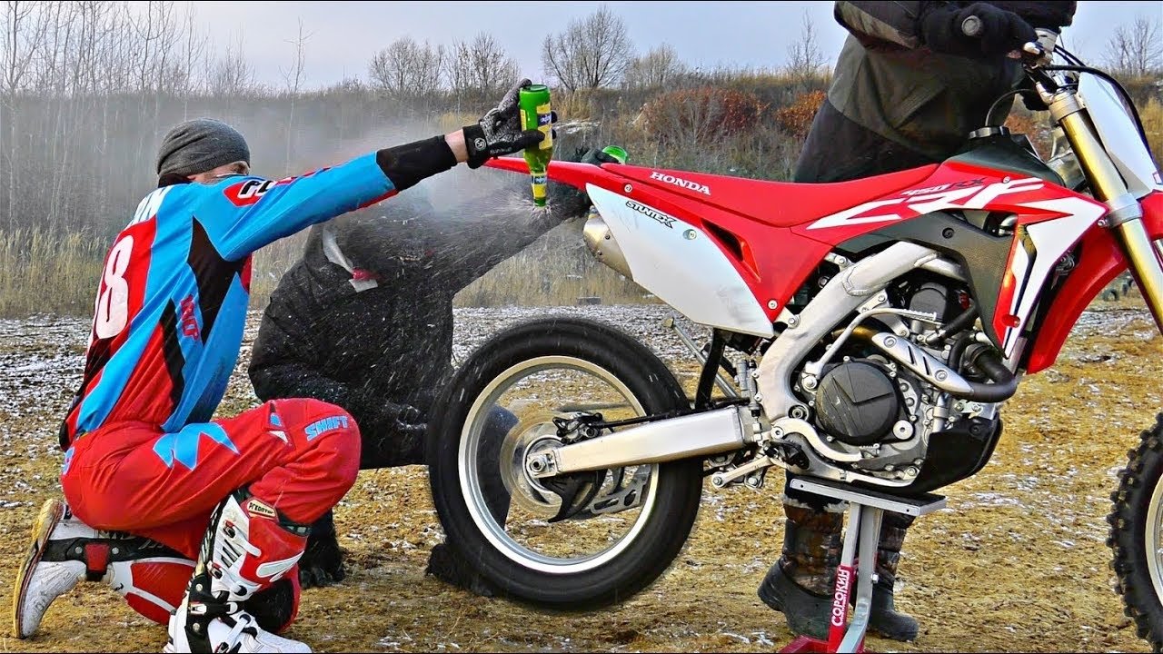 Колеса на мотоцикле взаимозаменяемые с предыдущими годами. Переднее колесо можно поставить от любого CRF250R / 450R с той лишь оговоркой, что до 2015 года был тормозной диск диаметром 240 мм (сейчас 260 мм), но по посадочным отверстиям тормозные диски одинаковые. По заднему колесу также, можно поставить от любого года, но до 2013 года ступица была уже, и звезду нужно ставить через адаптер. Вобщем, запасные колеса на хонду 2017 не проблема. Я стараюсь всегда иметь два комплекта колес. Например, зимой, одна пара колес на Петрошине без шипов, другая пара колес на шипах, соответственно можно быстро переобуть мотоцикл под погодные условия и обстоятельства.