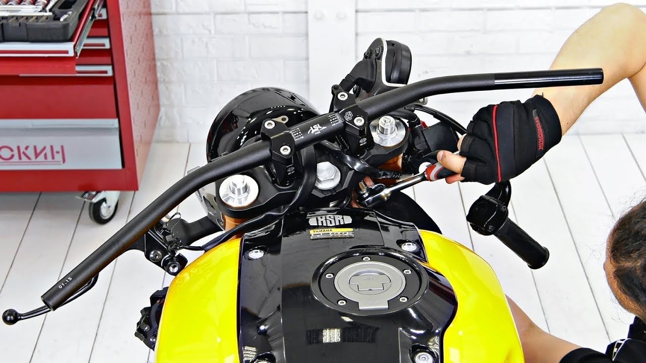 Для XSR отлично подходит геометрия рукояток Drag Bar с нулевым подъемом. Вообще, нулевой подъем слишком низок, но если стойки регулируемые, то подъем можно задать с их помощью. Особенность XSR900 в том, что на стойках есть крепление приборки. Gilles Tooling производят регулируемые стойки специально для этой модели. Стойки настраиваются по высоте и выносу без снятия руля, что очень удобно.