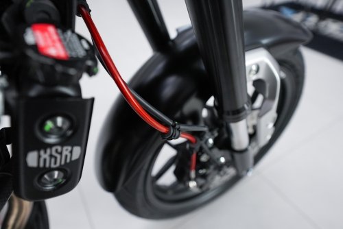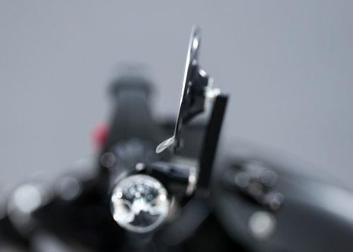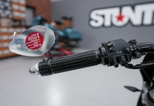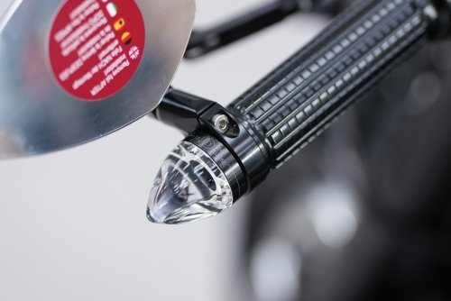 Провода поворотников mo.blaze cone прокладываются в руле и выходят через отверстие в руле между стойками. Это сверхъяркие сертифицированные поворотники, которые мы поставили в дополнение к передним поворотникам Rhombus