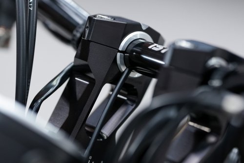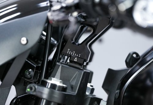 После установки руля обнаружили ожидаемую проблему: в крайних положения грипсы были слишком близко к баку. Исправить проблему можно регулируемыми стойками.