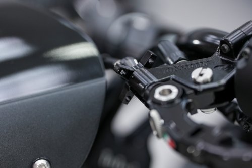 На нашем XSR125 в стоке стоит прямой высокий руль, который мы заменили на руль LSL AS1 Clubman с бОльшим загибом назад, чтобы положение рук было ближе к телу и более обтекаемым. Высота этого руля ниже под более скоростную езду. Еще новый руль намного лучше подходит по стилю заводскому каферейсеру от Yamaha.